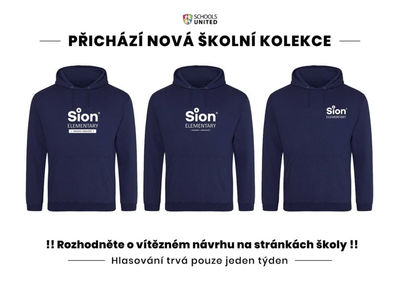 Do školy přichází nová školní kolekce oblečení a jste to právě Vy, kdo rozhodne o její podobě! Hlasujte do 8.11.2022 o tom, který ze tří motivů se Vám líbí nejvíce. Vítězný motiv potom použijeme na vytvoření celé kolekce, kde najdete nejen mikiny a trička, ale i tepláky, batohy, čepice a další kousky.