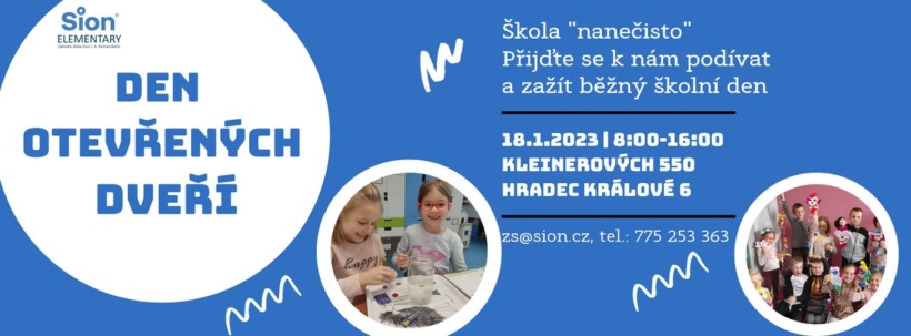 Srdečně Vás zveme na den otevřených dveří. V lednu se na Vás těšíme 18. 1. v čase od 8 do 16 hodin. Přijďte se podívat k nám do školy, rádi Vás provedeme a zodpovíme Vaše dotazy.