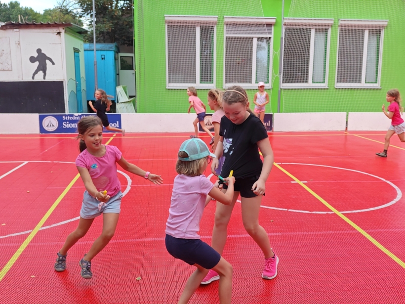 Pokud to jen počasí trochu dovolí, trávíme s dětmi co nejvíce času venku, kde mají děti bohaté vyžití. K dispozici je mnoho venkovních her, síť na volejbal, badminton, koloběžky, florbal, ale také velká tabule na kreslení křídou atd. Pohyb na čerstvém vzduchu je pro nás velmi důležitý.